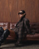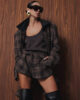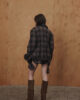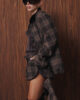 Об’ємний бомбер виконаний із вовняної пальтової тканини у клітинку, де гармонійно поєднуються коричневі, сірі та бежеві відтінки. Модель з довгими рукавами на манжетах та маскулінними плечима. Має вільний крій, відкладний комірець із екошкіри та накладні кишені з клапанами. Низ виробу оздоблено резинкою для кращої посадки по фігурі. Застібається на блискавку та кнопки. Виріб на підкладці.