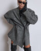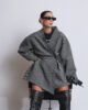 Кімоно oversize крою, виконане з вовняної пальтової тканини в чорно-білу ялинку. Зав’язується стрічками зсередини та ззовні. Кишені у бокових швах. Виріб на підкладці. Представлене в універсальному розмірі- OS