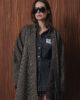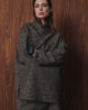 Кімоно oversize крою, виконане з вовняної пальтової тканини у коричневу ялинку. Зав’язується стрічками зсередини та ззовні. Кишені у бокових швах. Виріб на підкладці. Представлене в універсальному розмірі- OS